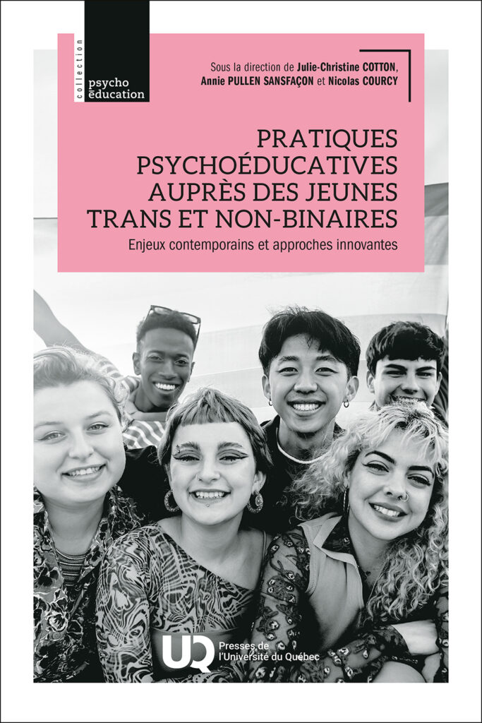 Le Prix Dominique-Trudel de l’Ordre des psychoéducateurs et psychoéducatrices du Québec (OPPQ) a été remis à Julie-Christine Cotton, Annie Pullen Sansfaçon et Nicolas Courcy pour leur ouvrage : Pratiques psychoéducatives auprès des jeunes trans et non-binaires : enjeux contemporains et approches innovantes.